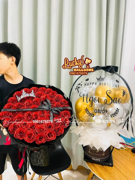 🌟 Mẫu 3: Combo Hoa + Money Balloon