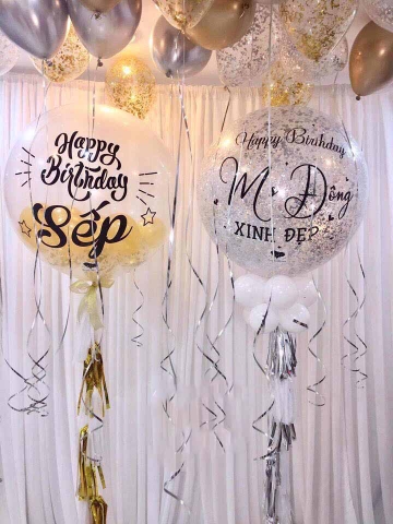 - Màu sắc bóng Jumbo in chữ bóng Jumbo PE là chất liệu nhựa dẻo trong suốt nên khi muốn tạo màu thì có nhiều cách để trang trí có thể dùng màu chuyên đổ vào bóng hay có thể vẽ lên bóng để tạo màu cần trang trí và cách mà Lucky Balloon hay sử dụng đó là dùng kim tuyến nhũ để tạo màu cho bóng vì dùng nhũ kim tuyến lý do là nhũ kim tuyến bắt sáng rất tốt tạo cho bóng bay jumbo in trở nên lấp lánh và nổi bật hơn