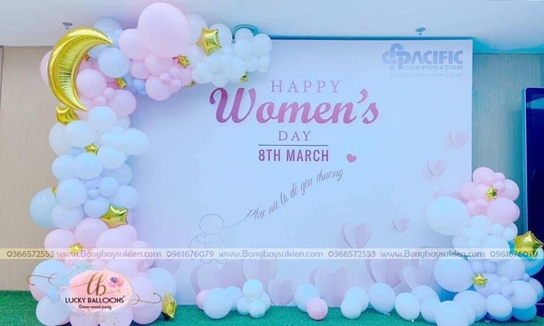 - Tạo hình backdrop bong bóng 8/3 ấn tượng.