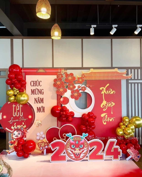 Set background Tết bằng bóng bay cho công ty, cửa hàng, TTTM