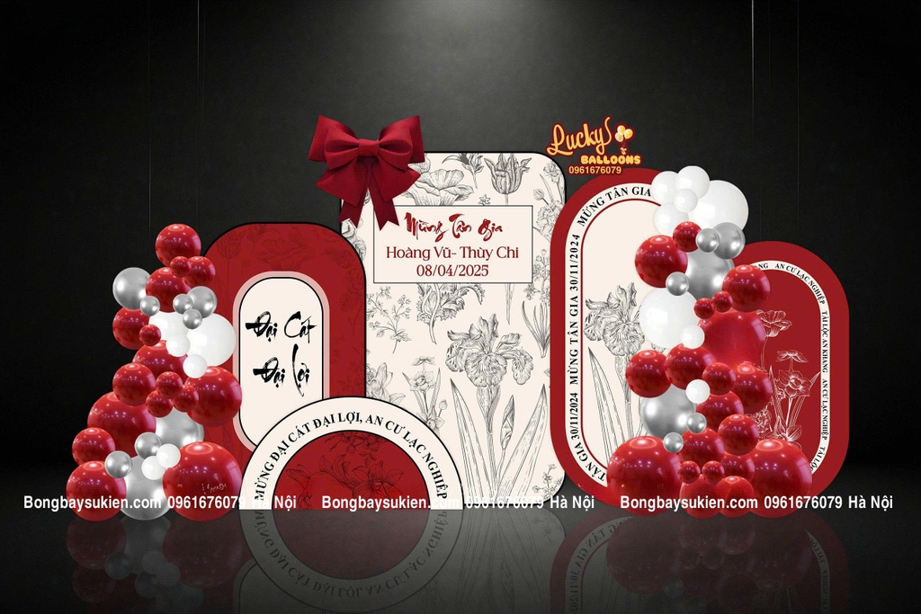 Các mẫu backdrop, cổng bóng bay, bàn gallery, chữ nổi chúc mừng… được thiết kế riêng theo phong cách gia chủ, đảm bảo đẹp – sang – tiết kiệm chi phí.