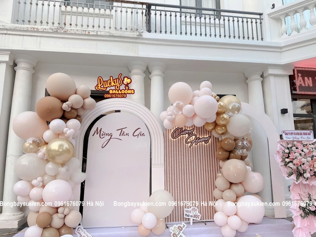 trang trí tân gia đẹp, backdrop tân gia Hà Nội, trang trí tiệc nhà mới, dịch vụ trang trí sự kiện Hà Nội, Lucky Balloons Hà Nội