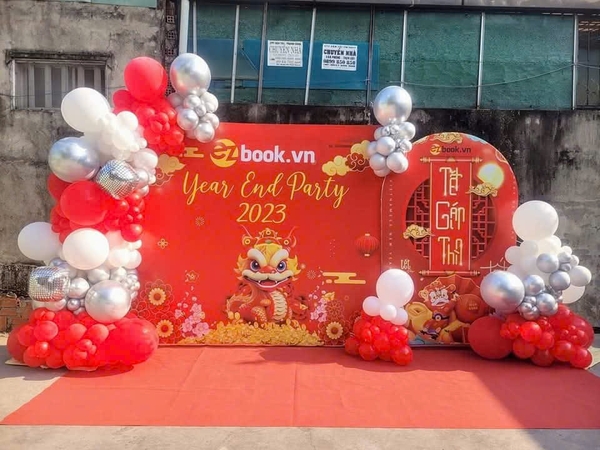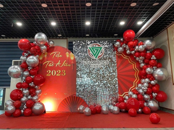 Một bữa tiệc tất niên không thể trọn vẹn nếu thiếu đi thiết kế trang trí đẹp mắt. Backdrop sang trọng – cổng chào ấn tượng – bóng bay nghệ thuật giúp không gian trở nên đẳng cấp, thu hút ánh nhìn và tạo cảm xúc tích cực cho toàn bộ khách mời.
