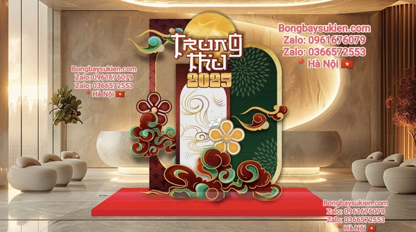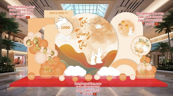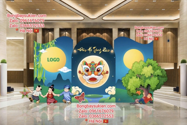 Công ty: Tạo một khu vực check-in Trung Thu tại sảnh công ty, với cổng bóng và backdrop ấn tượng, giúp nhân viên có những khoảnh khắc thư giãn, vui vẻ.