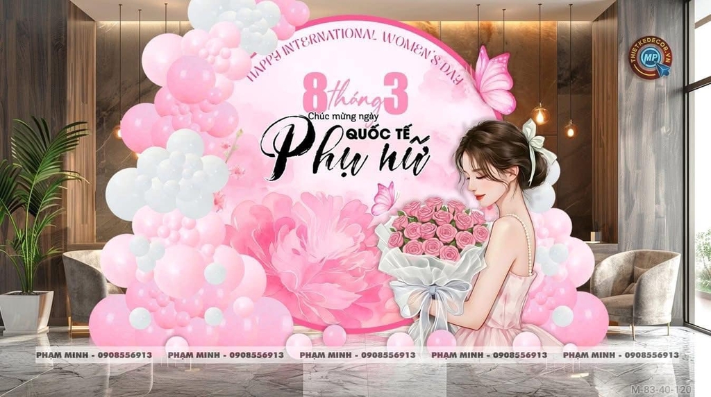 Ngày Quốc tế Phụ nữ 8/3 là dịp đặc biệt để tôn vinh "nửa thế giới". Để tạo nên một buổi lễ kỷ niệm ấm cúng, sang trọng và thu hút, việc sở hữu một backdrop 8/3 (phông nền) ấn tượng là điều không thể thiếu. Không chỉ là nơi lưu giữ những bức ảnh kỷ niệm, backdrop còn là bộ mặt của sự kiện, thể hiện sự trân trọng đối với phái đẹp.