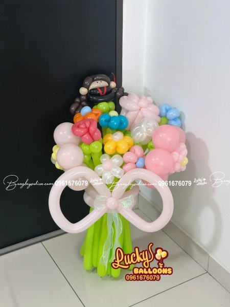 Đây là mẫu bó hoa dành cho những ai muốn tạo sự bất ngờ và ấn tượng mạnh mẽ. Bó hoa có kích thước lớn, kết hợp nhiều loại bóng bay khác nhau, tạo nên một tổng thể hoành tráng và rực rỡ. Mẫu này rất phù hợp để làm quà tặng cho một nhóm bạn hoặc tập thể.