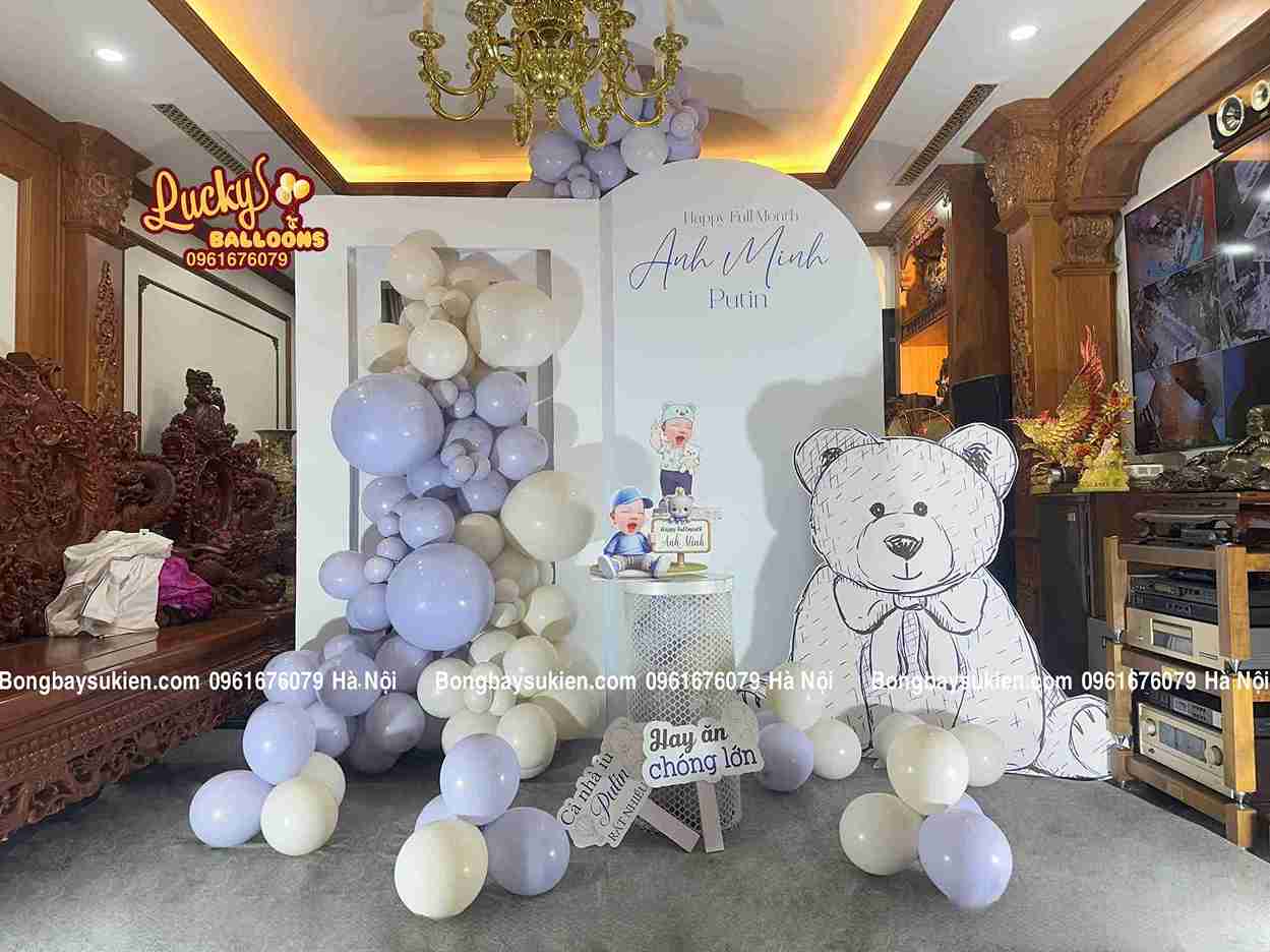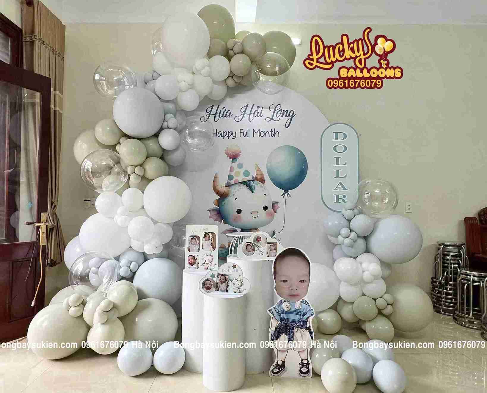 Dịch vụ setup đầy tháng bé trai tại Hà Nội chuyên nghiệp, nhiều concept đẹp, giá chỉ từ 1.2 triệu. Liên hệ Lucky Balloons để được tư vấn miễn phí!