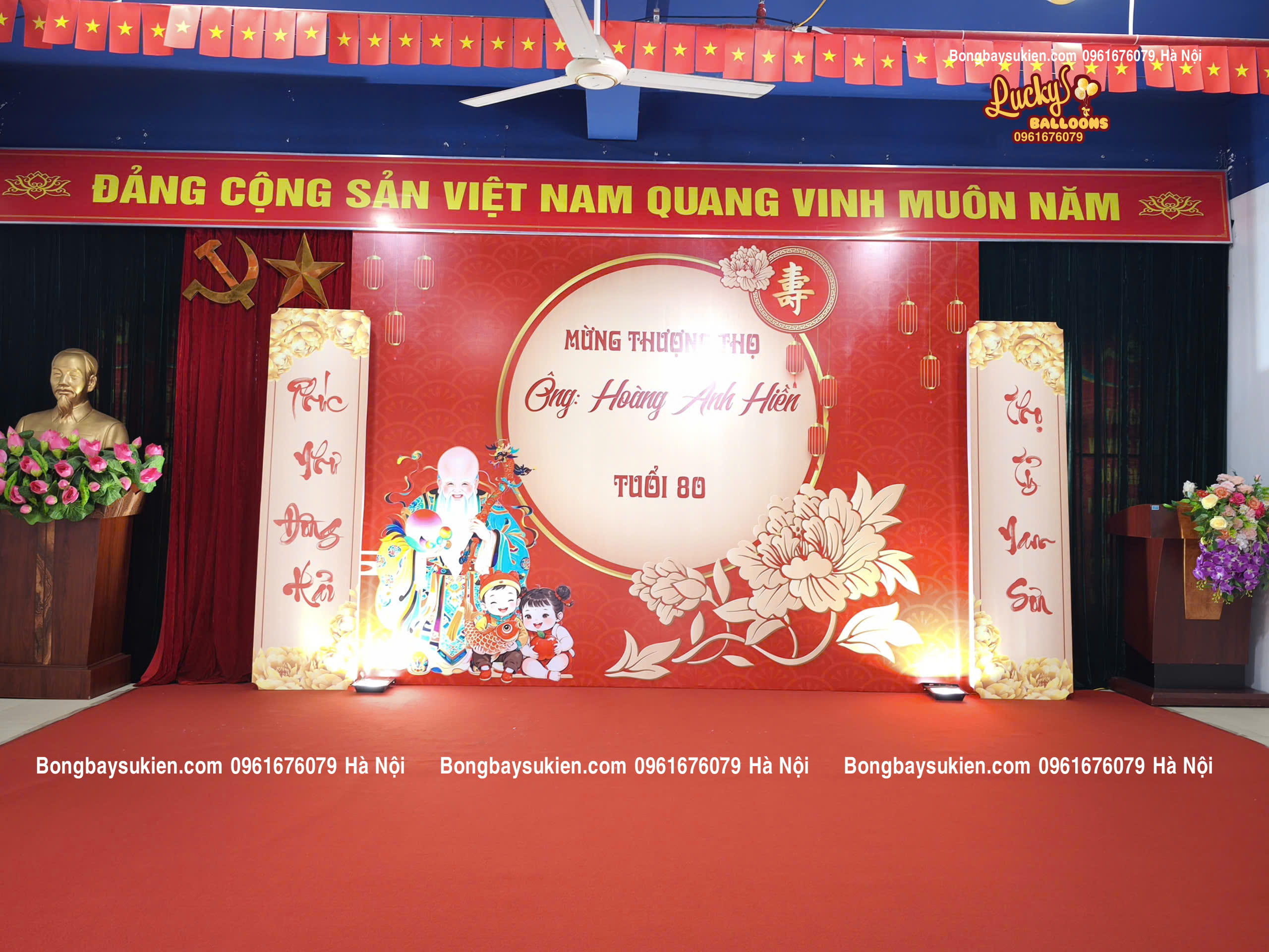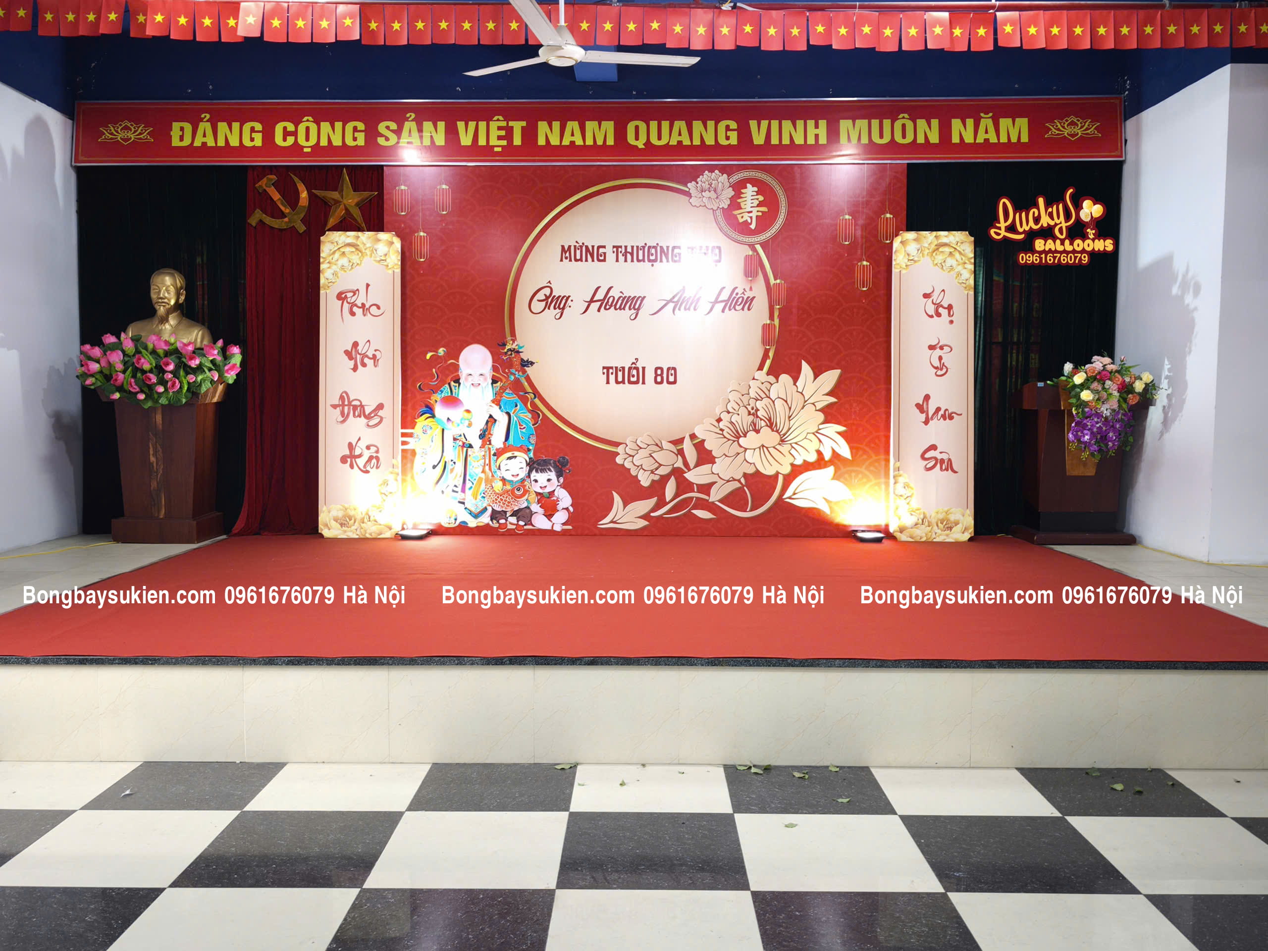 Dịch vụ trang trí lễ mừng thọ tại Hà Đông Hà Nội đẹp – sang trọng – giá hợp lý. Setup nhanh, thiết kế theo yêu cầu. Gọi ngay 0366572553 tư vấn 24/7!